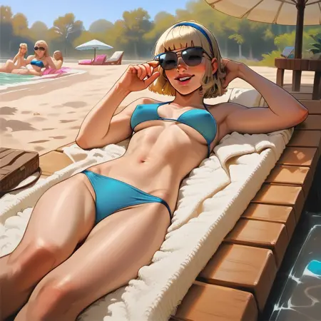 기타 태그: 짧은 금발 머리, 밥컷 헤어스타일, 헤어밴드, 큰 융기된 가슴, 날씬함, 넓은 엉덩이