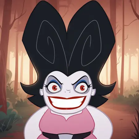 Ferocia, solo, 1girl, black hair, red eyes, lipstick, makeup, grey skin,