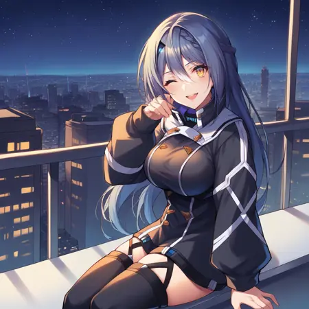 Etra, blue hair, long hair, yellow eyes, white streaked hair, braid, hairclip,