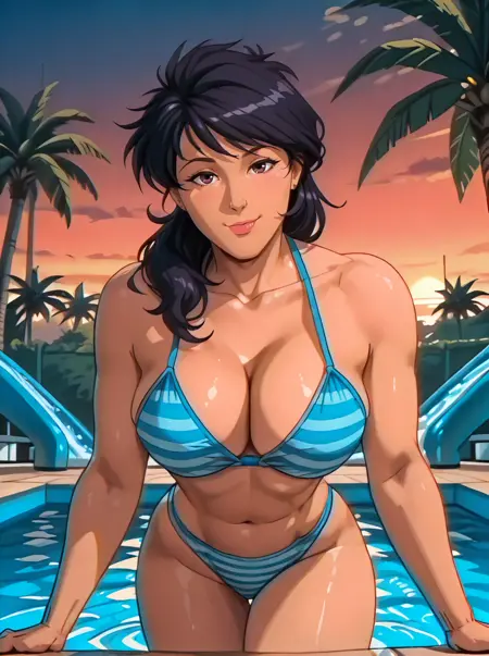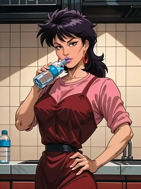 1990년대 애니메이션 "Skysurfer Strike Force"에 등장하는 슬라이스드 아이스(킴버리 사카이). 이 프로그램은 "G.I. 조"와 "파워 레인저"가 결합된 느낌을 갖는다. 김은 팀 내 유일한 여성 멤버이며, 동료들과 마찬가지로 일상복에서 전투복으로 변신하는 파워 레인저 스타일의 "모핑" 시퀀스를 거친다. LoRA에는 이 애니메이션에서 등장하는 일상복 두 벌과 전투복을 포함하였다.