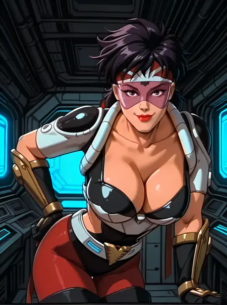 변신 과정의 처음 몇 초 동안 그녀는 "제로 수트"를 입고 있는데, 이는 방영된 에피소드에서 완전한 몸체 모습이 한 번도 등장하지 않습니다. 이 상태를 재현하려면 "검은 레오파드, 검은 장갑, 빨간 허벅지 양말"만 트리거로 사용하고 나머지 의상 요소는 제외하세요. 애니메이션에서 제로 수트의 전체 신체를 보여주지 않았기 때문에, 저는 Krita로 직접 소스 이미지를 편집하고 그렸습니다.