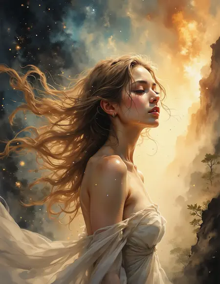 Ink Wash Fusion은 전통적인 수묵화(수묵화, 수묵화, 스미에) 기법을 현대적인 디지털 예술과 정교하게 융합한 스타일로, 영원한 전통과 현대를 연결합니다. 이 융합은 종이 위의 먹의 유기적인 흐름을 부드러운 그라데이션과 자연스러운 번짐 효과로 포착하여 전통 수묵화의 유동성과 우아함을 표현합니다. 동시에 향상된 대비와 초점이 선명한 질감은 시각적 요소에 초현실적이고 강렬한 분위기를 더하며, 세밀함과 대담함 사이의 균형을 이룹니다. 이 스타일은 간결한 묘사로 평온한 미니멀리즘을 구현할 수 있는 동시에 복잡한 세부 요소를 추가해 열린 공간의 명상적인 고요함과 복잡한 서사의 역동적인 에너지를 동시에 불러일으킬 수 있습니다.