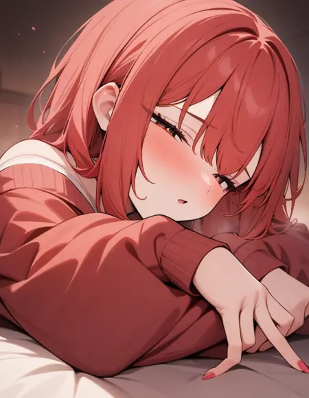 보너스: 만화에서의 모모카 표현 중 눈을 감고 입이 작은 표현을 원한다면 아래 내용으로 **빨간 눈**을 대체하세요.