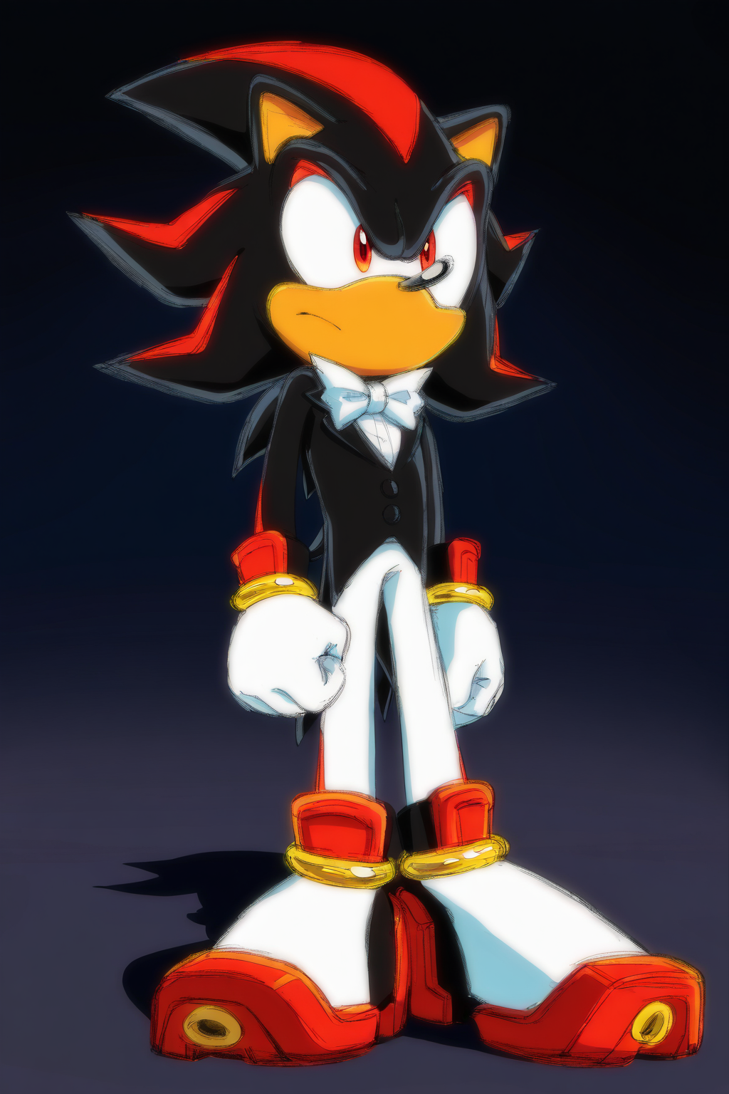 辅助词:红色眼睛,白黄手套,黑红袖口,鞋子