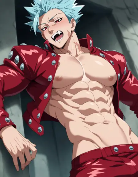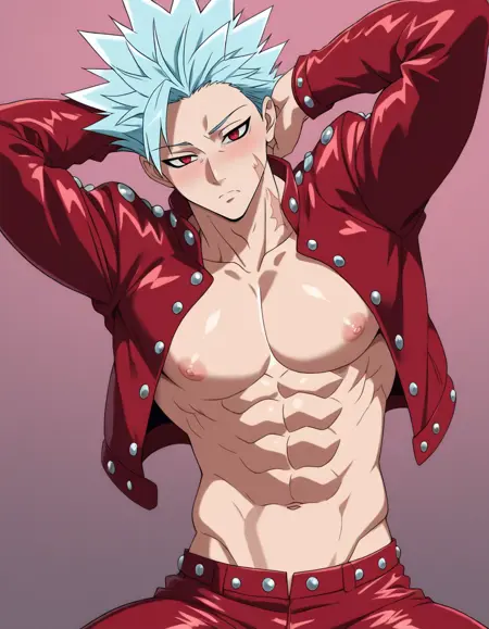 Here is the sexy Ban from Seven Deadly Sins. Only struggle is keeping his jacket closed. His big ol' pecs keep bursting out his top! Adetailer helps the look for face detail. Hope you enjoy!