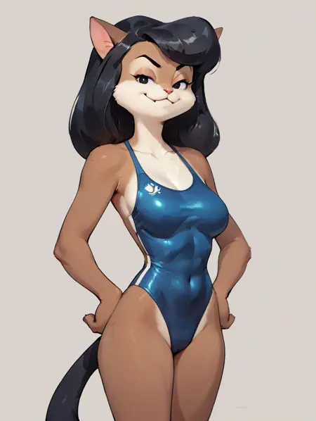 COLOR body fur, COLOR hair, COLOR eyes, COLOR eyeliner, cat tail
