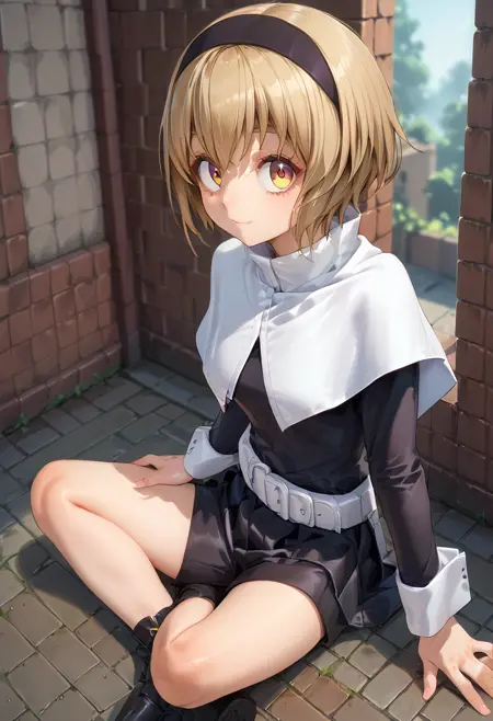 aguraFromSide, sitting, from side,