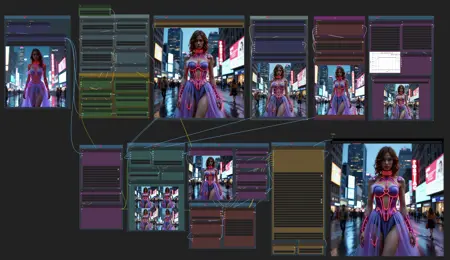 1 generation creates 5 images, of which one is upscaled, ran through detailer and finished with Stable Diffusion 3.5 Turbo.