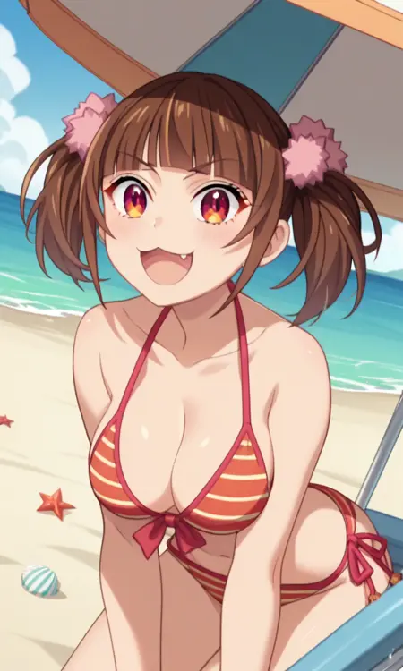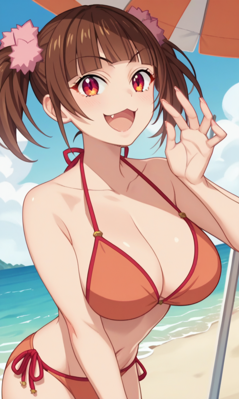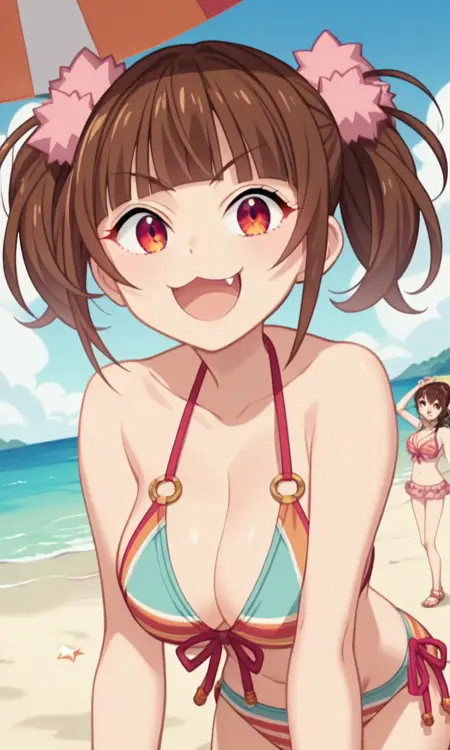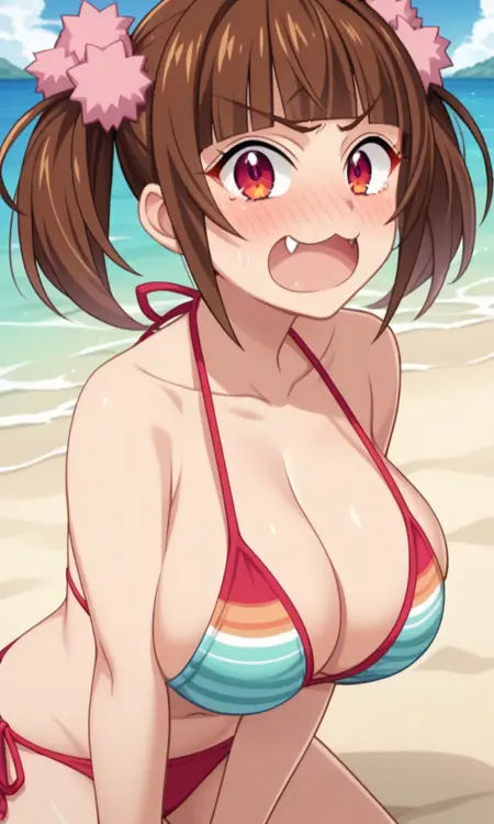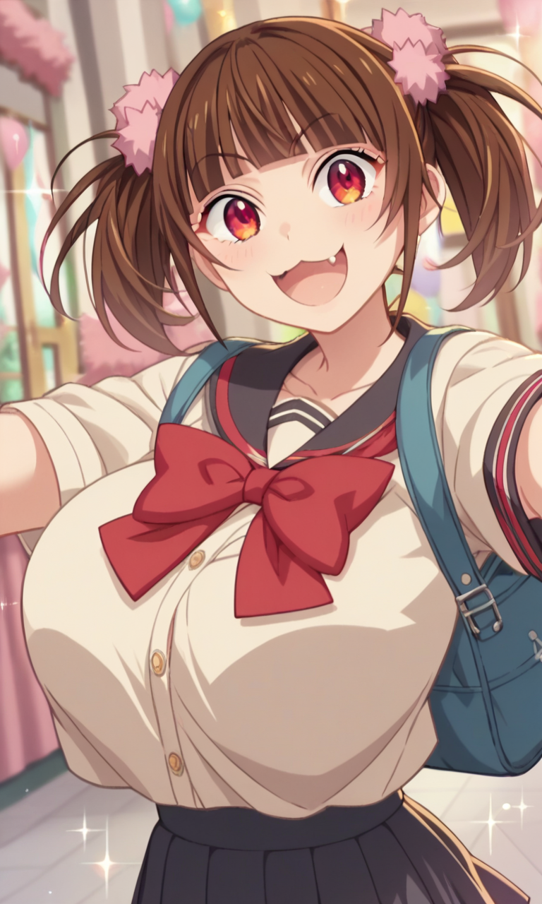 TW: (アニメスクリーンキャプチャ:1.2)まちやゆいな、pastel memories、大きな胸、ツインテール、犬歯、ストレート前髪、茶色の髪、赤い目、ツリ目、
