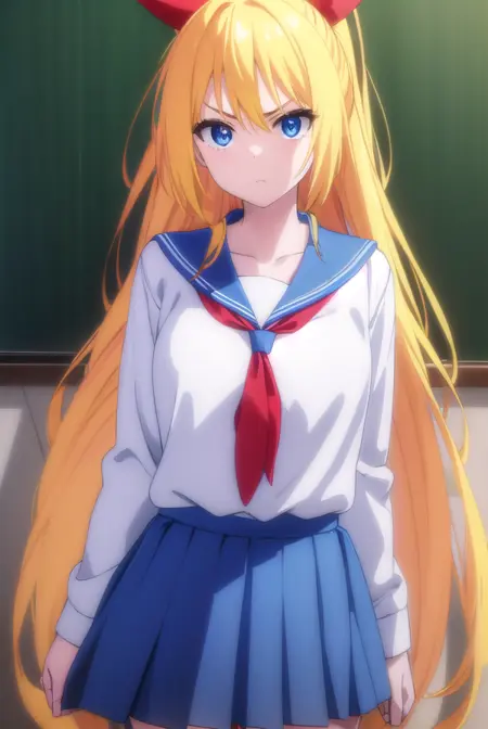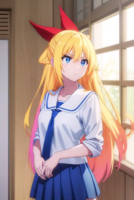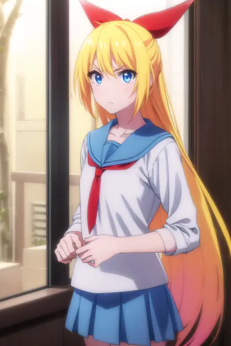 chitoge kirisaki, blonde hair, blue eyes, hair ribbon, long hair, red ribbon, ribbon,