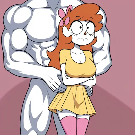 강화: 하얀 피부, 분홍색 리본, 분홍색 허벅지 양말
