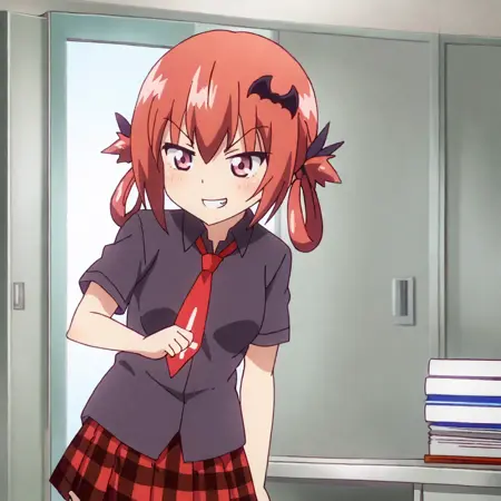 This LoRa is from the character "Satanichia Kurumizawa Mcdowell" from the "Gabriel DropOut".
