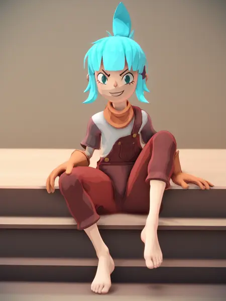 ゲーム内のモデラーは彼女の趾を付けていないため、LoRAにもそのようになっています。回避策として、「no toes, missing toes, toeless」をネガティブプロンプトに追加するか、「5 toes」とポジティブプロンプトで明記してください。