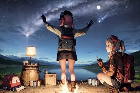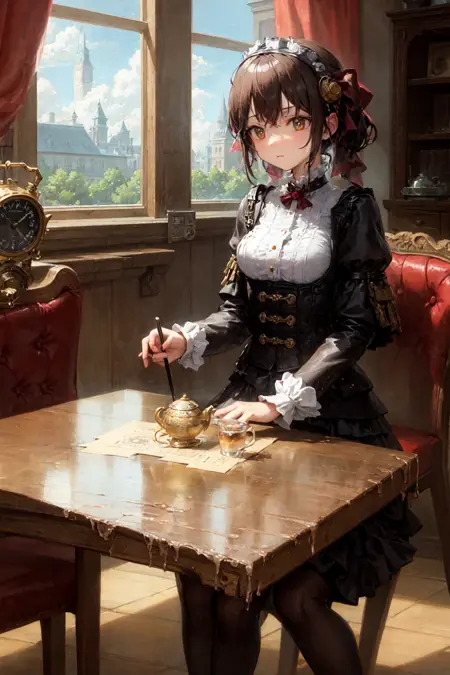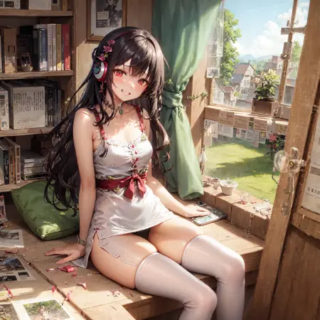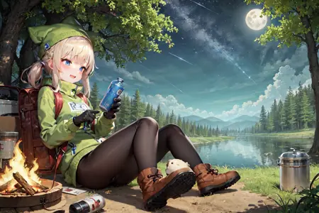 Features: Oil paintings like style artistic illustrations and stylish background depictions. In fact, this is mostly due to the work of Counterfeit 2.5, but the textures are more realistic thanks to the U-Net Blocks Weight Merge.