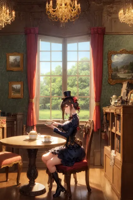 Features: Oil paintings like style artistic illustrations and stylish background depictions. In fact, this is mostly due to the work of Counterfeit 2.5, but the textures are more realistic thanks to the U-Net Blocks Weight Merge.