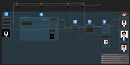 このワークフローでは、Stitchノードの代わりにImageCompositeMaskedノードを使用し、