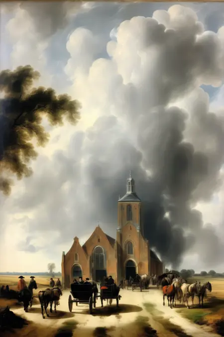 His landscapes often featured vast horizons, expansive skies, and small figures or architectural elements to provide a sense of scale. Van Goyen's brushwork was loose and expressive, with a focus on capturing the essence of the scene rather than intricate details.