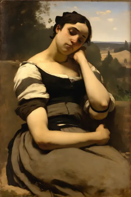 His style can be described as lyrical, atmospheric, and poetic. Corot's paintings often portrayed serene landscapes, rural scenes, and the play of light and shadow in nature. He had a remarkable ability to capture the mood and essence of a place, infusing his landscapes with a sense of tranquility and harmony.