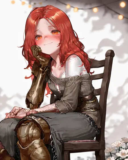 트리거 단어: Malenia, 헬멧, 주황색 눈, 빨간 머리, 보철물,
