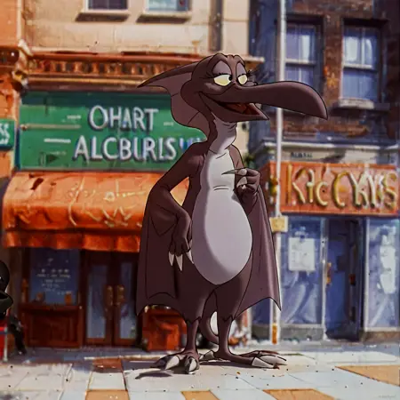 在这里,我们来到了《我们回来了!》这部精彩的卡通中,从纽约的街道上,出现了神奇的艾尔莎——翼龙。