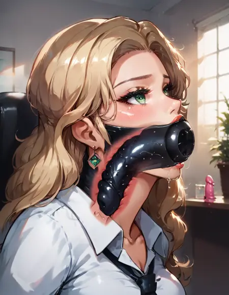 ガグ、ガグディルドが喉の奥深く。喉の中のX線ディルド