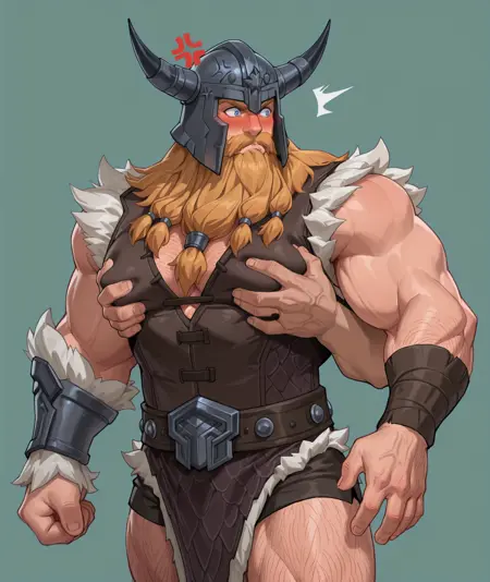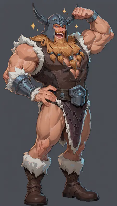 默认皮肤提示:角盔、胡须、编织胡须、毛皮镶边、背心、腰带、(单个)护臂、毛皮镶边腰布、毛皮镶边靴子