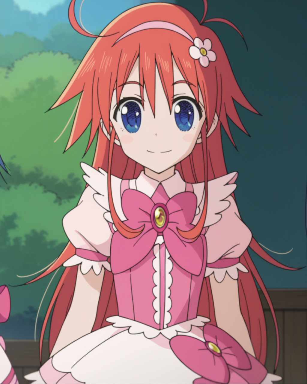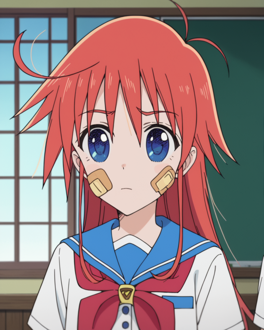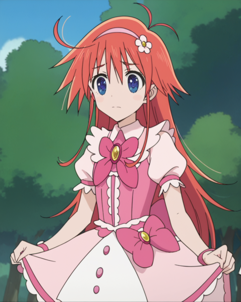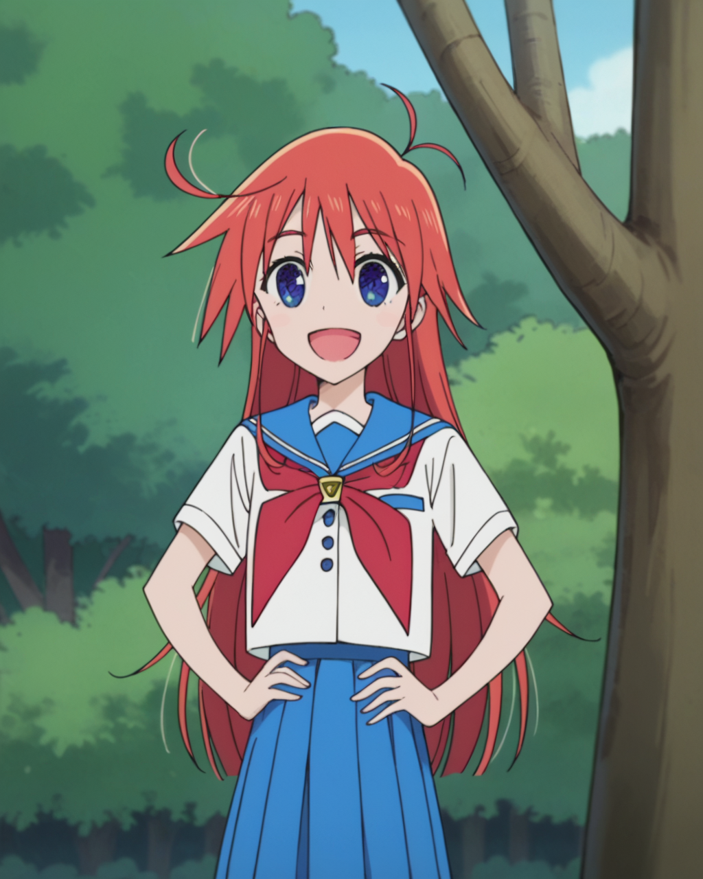 - 1girl, solo, papikapapikana, 파란 눈, 빨간 머리, 긴 머리, 안테나 머리