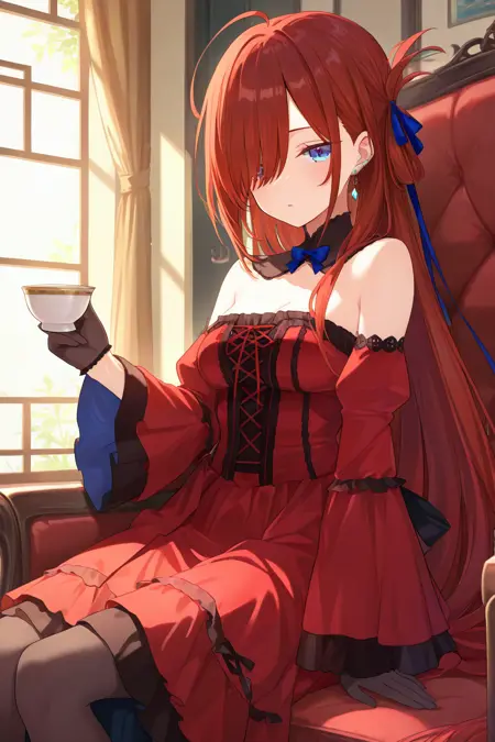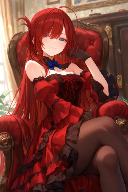 sd15_red_dress 트리거: 1girl riviere hair over one eye, red dress, detached collar, detached sleeves, bare shoulders, long sleeves, jewelry, black gloves, wide sleeves, red sleeves
