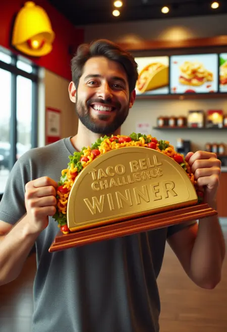 - (SUBJECT) が名前プレートに“(TEXT)”と彫られたゴールドの(TROPHY SHAPE)トロフィーを手にしている写真。