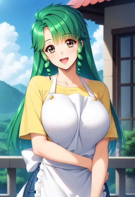 chih,1girl,brown eyes,green hair,drill hair,twin drills,