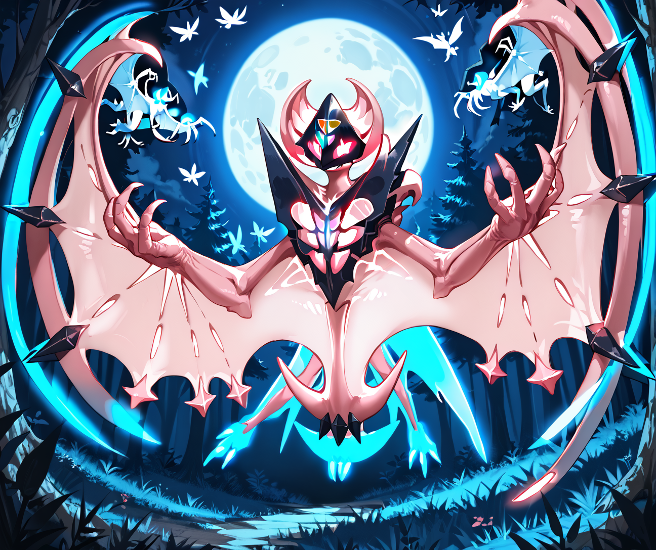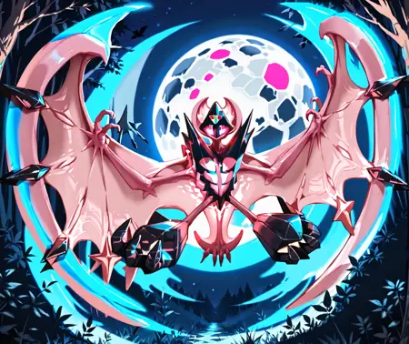 Now we get into the good stuff in the form of everyone's favorite moon bat, Lunala. Much more stable than the normal and dusk mane forms, and comparable with other Lunala models. It has tendancy to merge both the regular and shiny forms together, so be aware of that when prompting. Trigger words are "NecroDawn", "Dawn Wings Necrozma", and "Lunala."