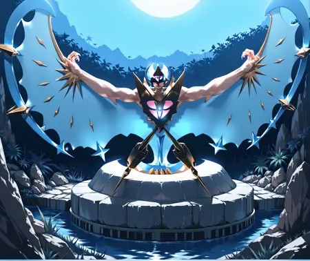 the base form of necrozma, and unfortunately the smallest dataset. Because of this, this one has a better time doing the feral form, but is more than capable of anthros when using the "personification" tag and/or setting the lora to 0.8-0.75(or lower)