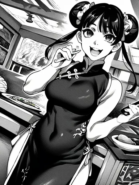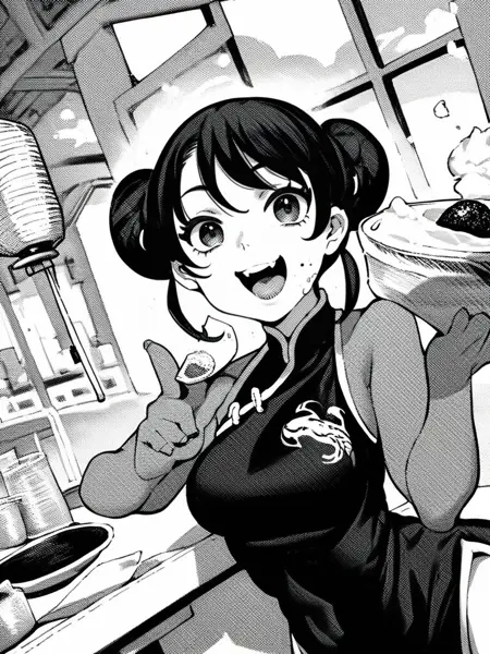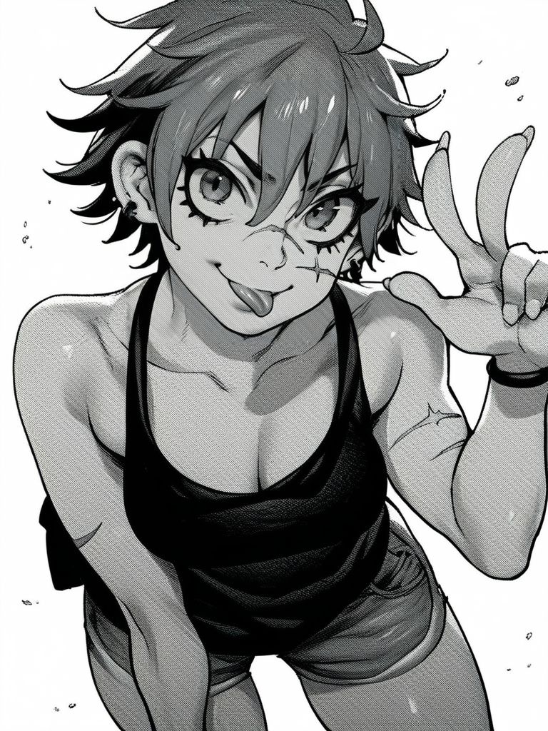 追加(Illustrious XL バージョンでのみ): "モノクロ、ハッチング(テクスチャ)"