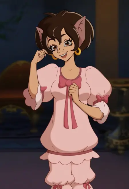 bow, pajamas, pink shirt, puffy sleeves, pink pants, bloomers,