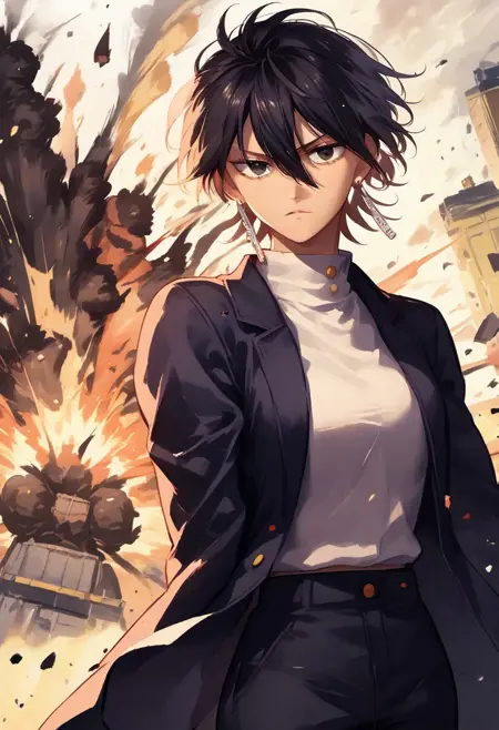 h1yuk1k4g4r1, 1girl, black hair, short hair, hair between eyes, bangs, school uniform, gakuran, earrings