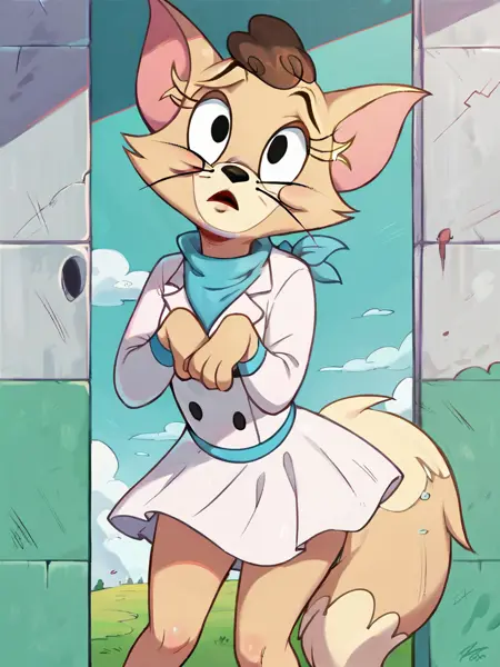 来自 @Morenoged 的另一项委托,这次是汤姆和杰瑞中的玛蒂尔达和米茜。我这次尝试将他们做成双人套装,效果还不错。