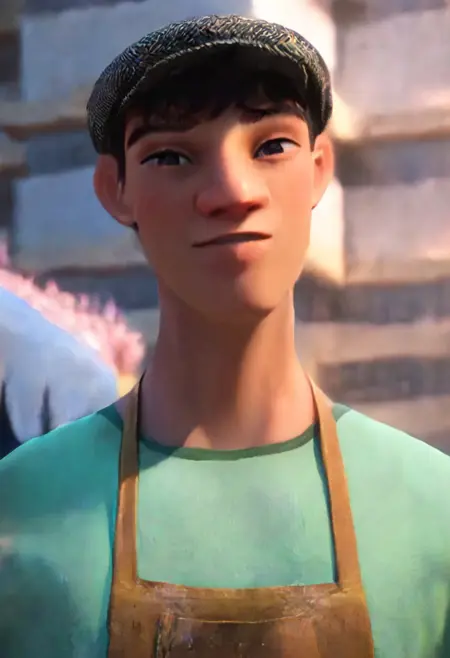 Yukio, black hair, black eyes, newsboy cap, shirt, apron,