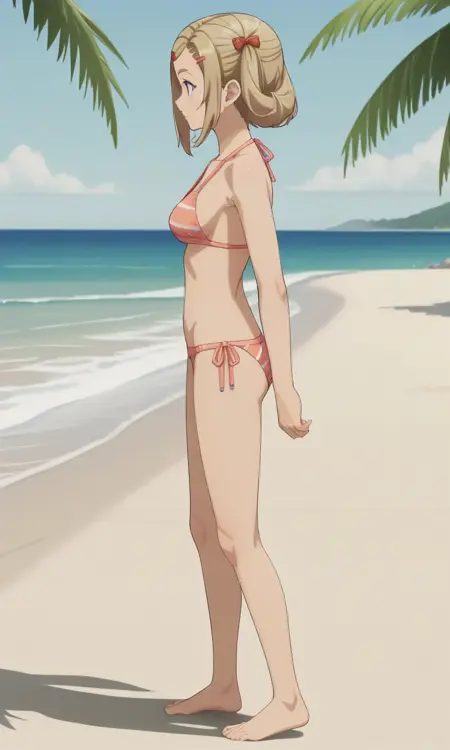necklace, cleavage, dress, bare hips, short pants, shoes