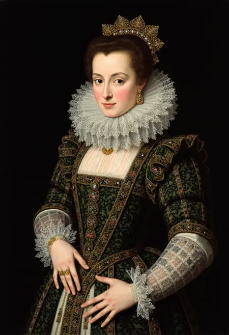 这里没有棱角分明的下颌,没有像铁块般宽阔的方下巴,没有勃列日涅夫式的浓眉,没有刀锋般锐利的颧骨,没有丰满夸张的嘴唇,也没有突出的锁骨——因为这个LoRA专为16至19世纪的女性及当时的审美理念而设计。