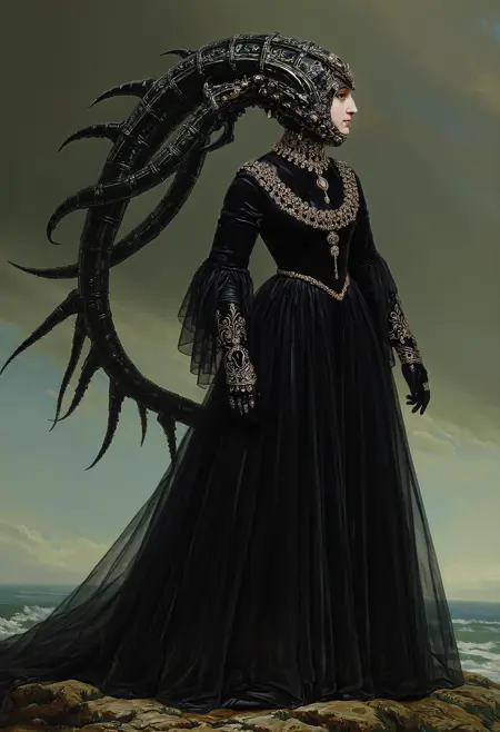 这里没有棱角分明的下颌,没有像铁块般宽阔的方下巴,没有勃列日涅夫式的浓眉,没有刀锋般锐利的颧骨,没有丰满夸张的嘴唇,也没有突出的锁骨——因为这个LoRA专为16至19世纪的女性及当时的审美理念而设计。