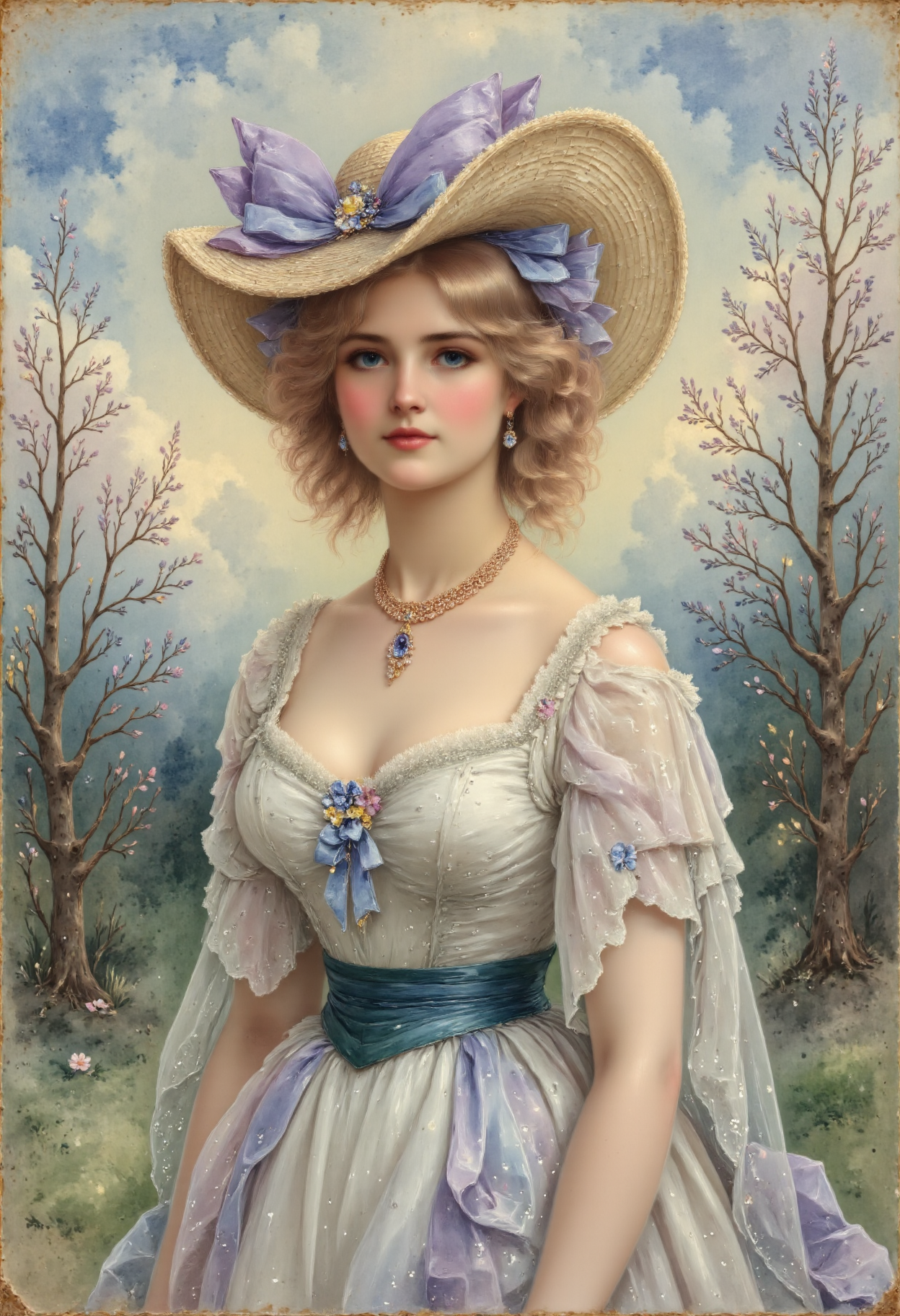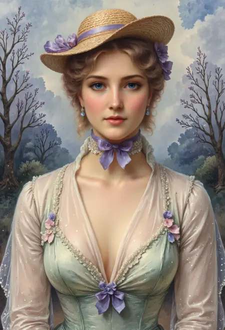 철제처럼 각진 턱, 거대한 사각형 턱, 브레즈네프 스타일의 눈썹, 면도날처럼 날카로운 뺨뼈, 볼륨감 있는 두꺼운 입술, 뼈가 드러난 견갑골—이 모든 특징은 여기서 찾을 수 없습니다. 이 LoRA는 16세부터 19세까지의 여성들과 그 시대의 미의 기준에 특화되어 있기 때문입니다.