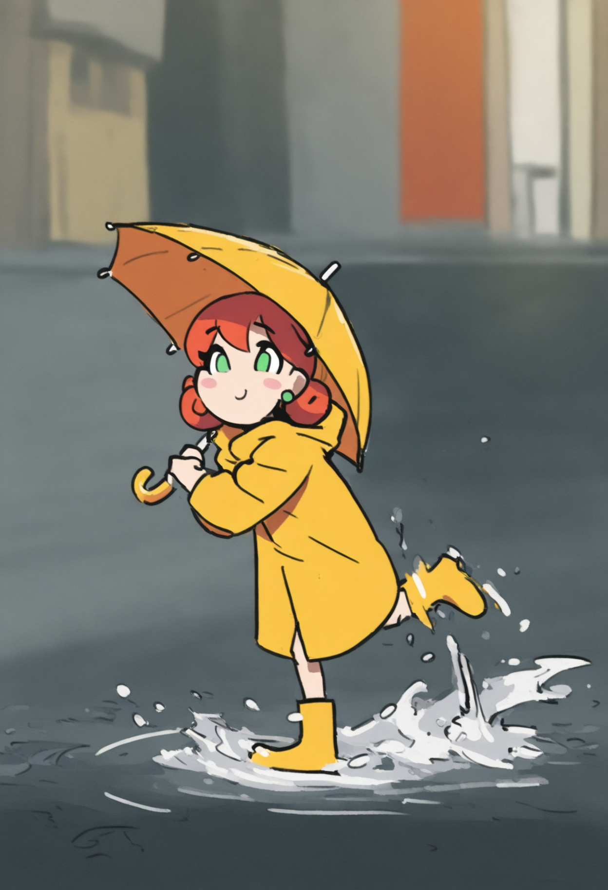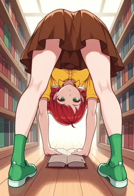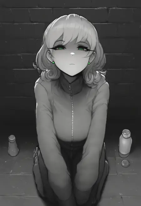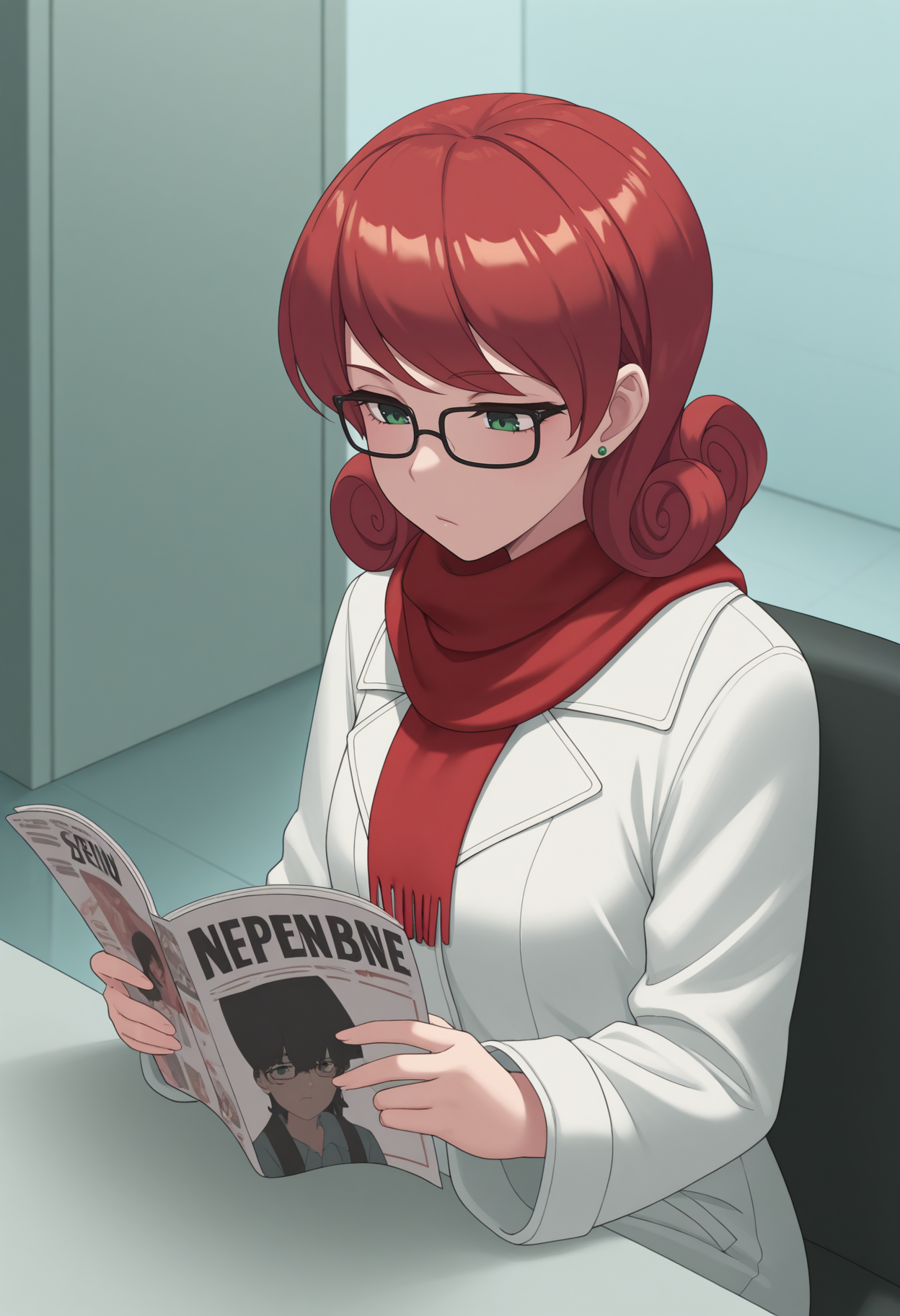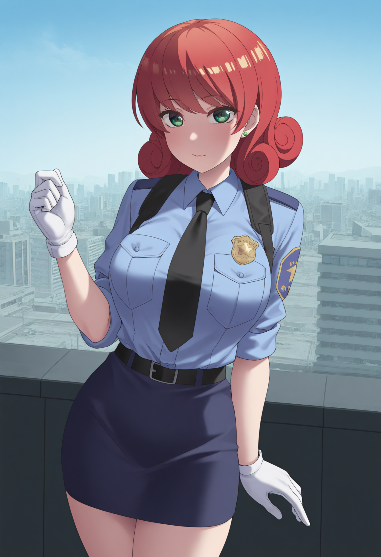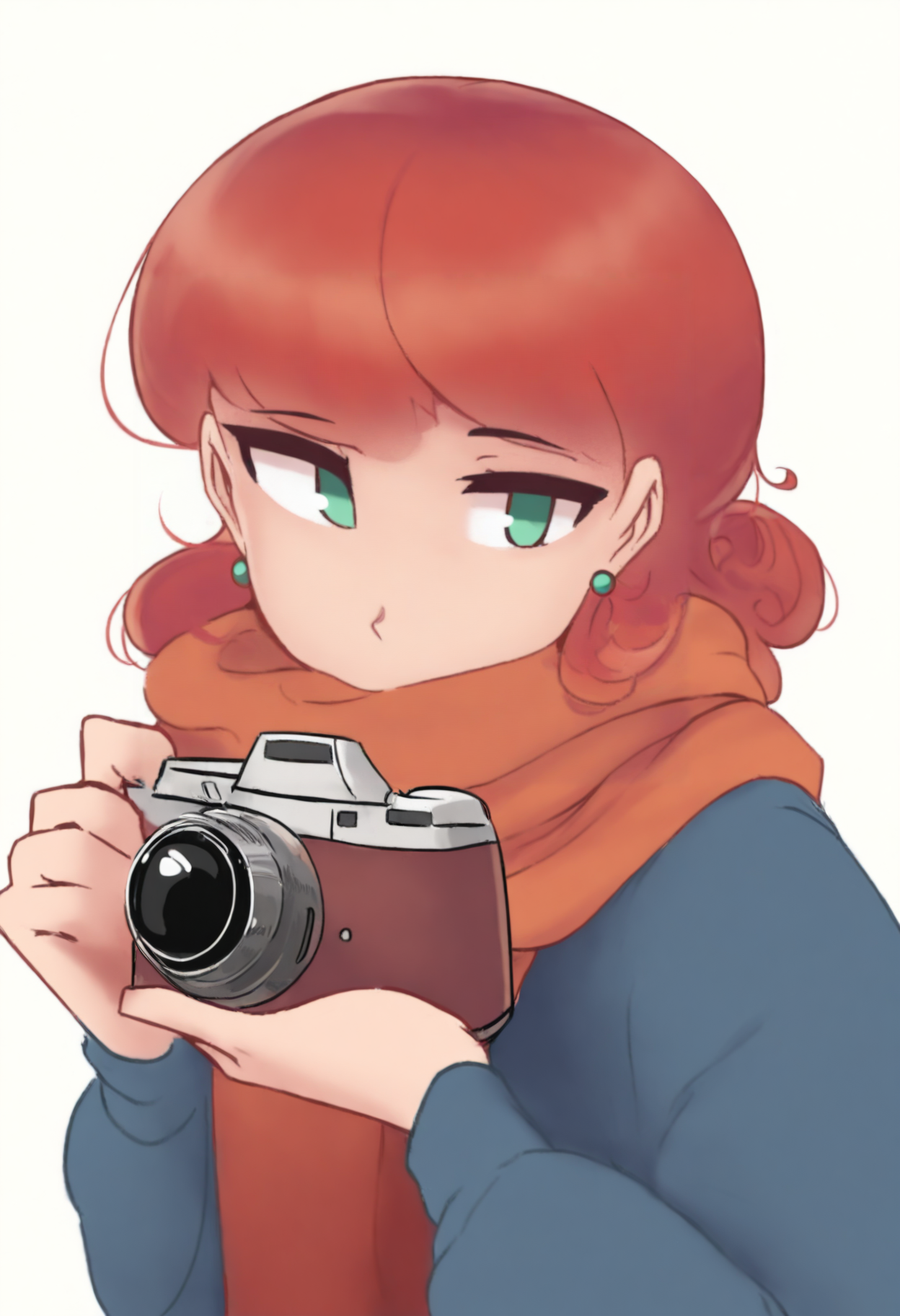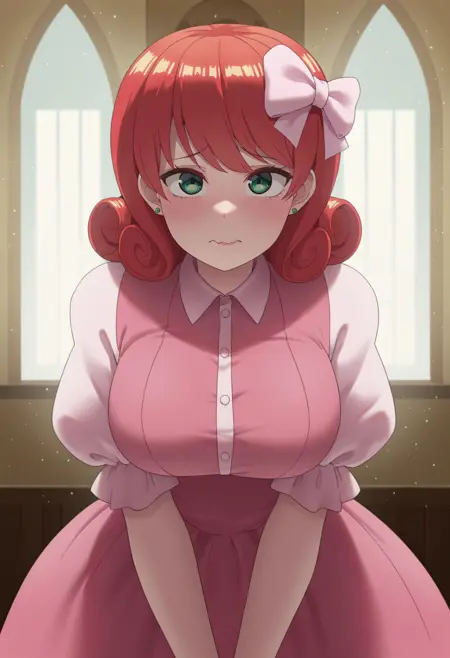 主なプロンプト:NSPennyMisc、緑の目、ミディアムヘア、赤髪、カールヘア、緑のピアス
