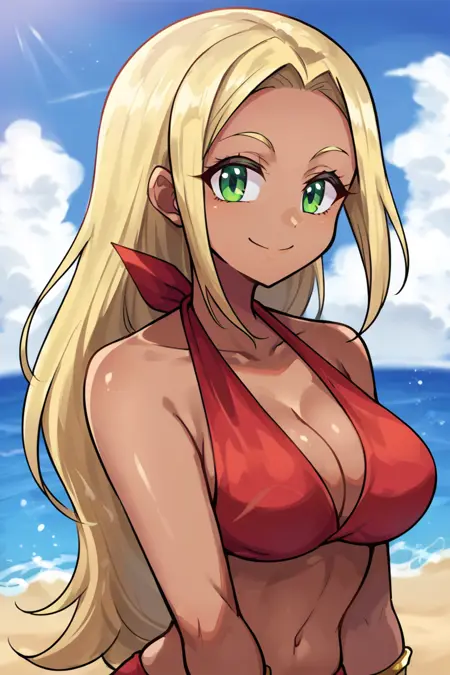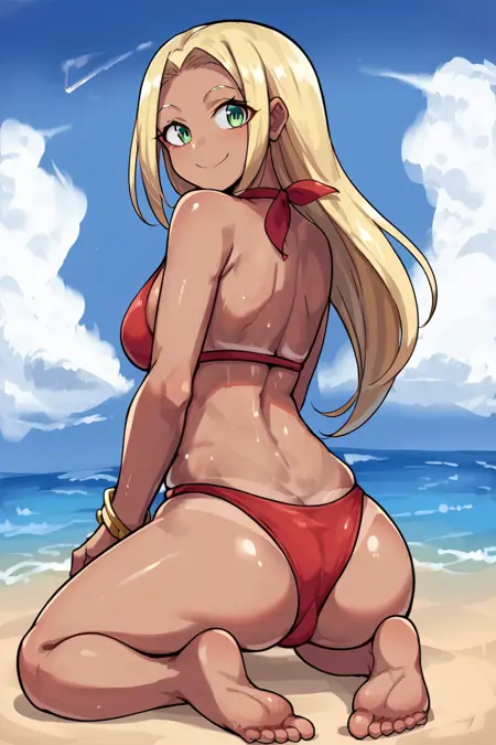 키워드는 xysw1mmer이며, 기타 유용한 단어로는 빨간 비키니, 밝은 피부, 초록색 눈, 금발, 금팔찌, 태닝 선이 있습니다.