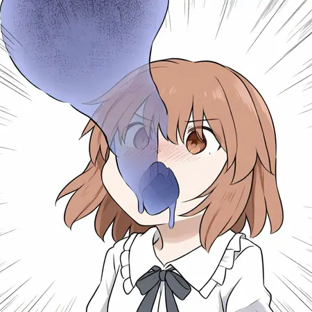slime entering mouth, wide eyed, blush, trembling