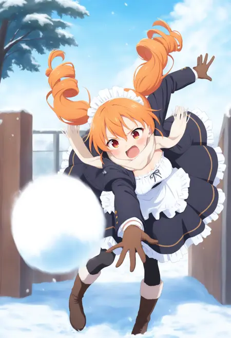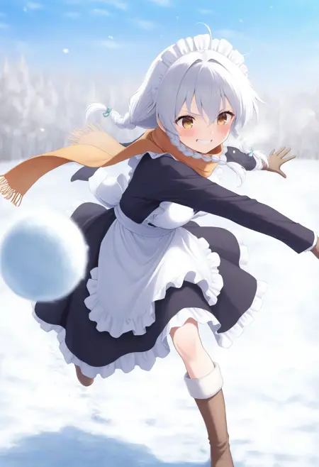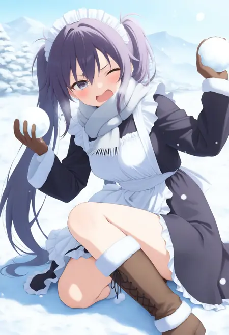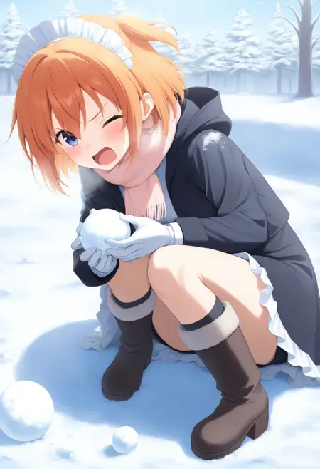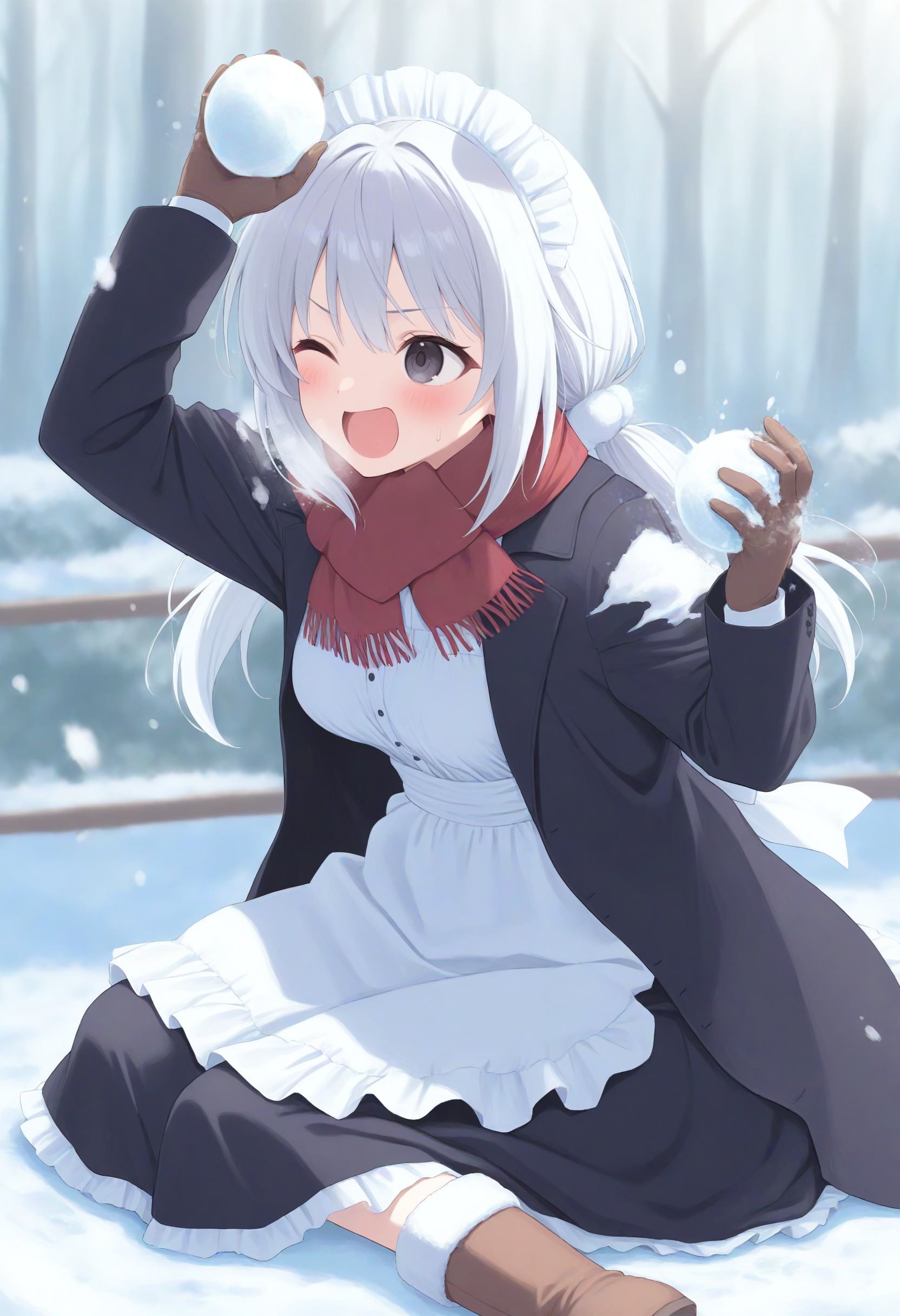 雪玉を投げたりぶつけられたりの雪遊びをさせるLoRAです。