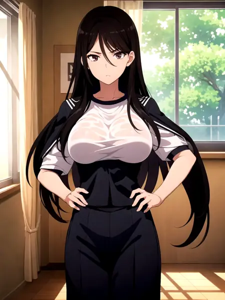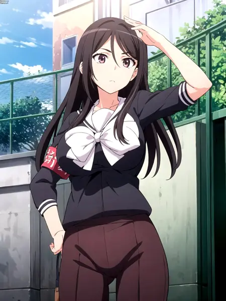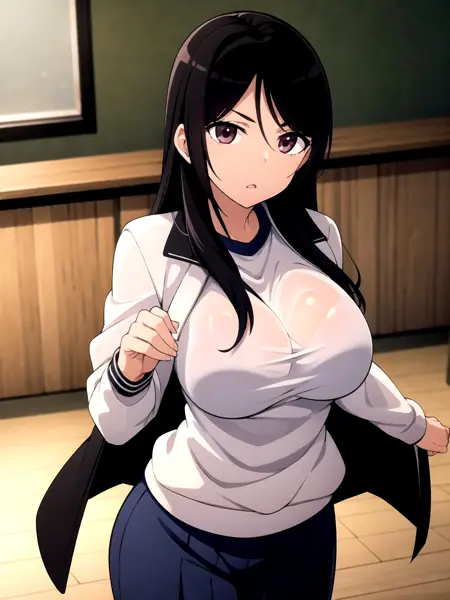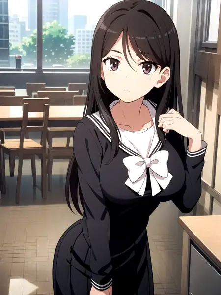 다음 프롬프트 사용을 추천합니다: lora:Fukiyose_Seiri_V4:0.7, 검은 머리카락, 중간에서 큰 가슴, 치마