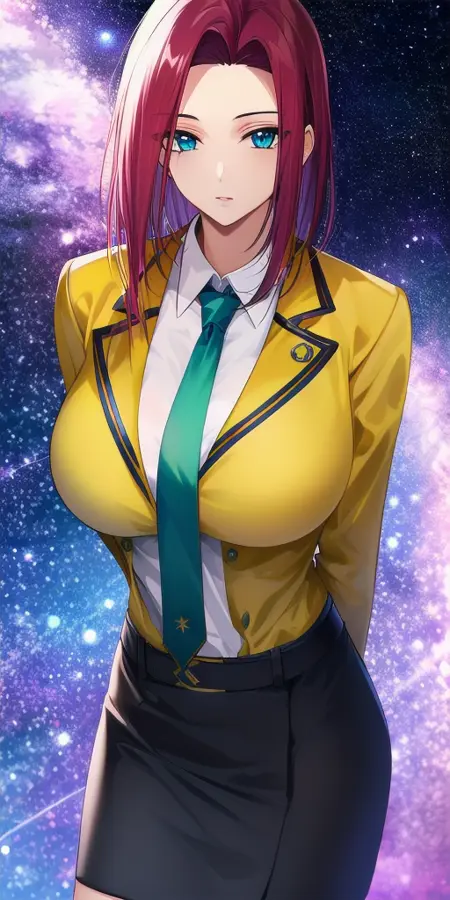 - yellow_jacket_white_collared_shirt_green_necktie_green_skirt_belt: 애슈포드 학교 유니폼, 역시 애매함.
