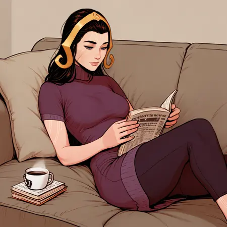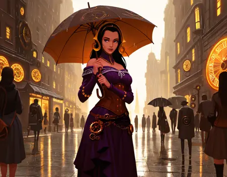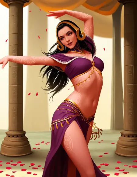 그녀의 기본 복장은 강도 0.8 이상에서 단순히 purple dress만으로 재현할 수 있습니다.