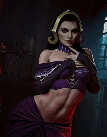 Magic: The Gathering의 플레인스워커이자 네크로맨서인릴리아나 베스의 116장의 이미지를 기반으로 한 캐릭터 모델.