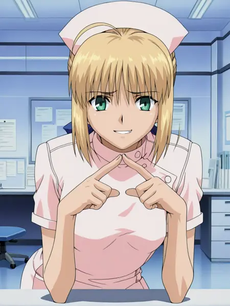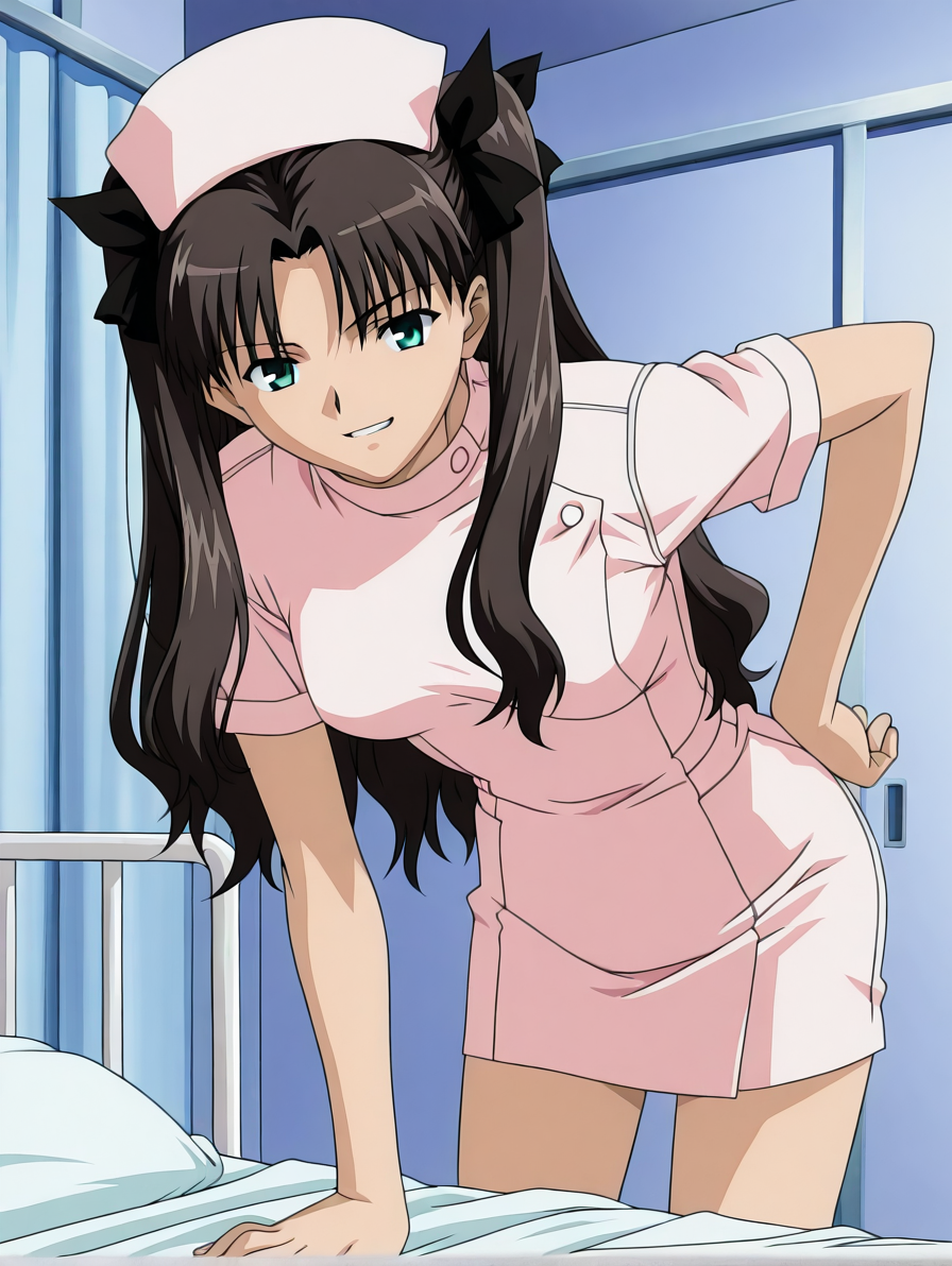 - nan4s3、髪を結んだスタイル、髪飾り、黄色いリボン、ポニーテール、非常に長いポニーテール、看護師の帽子、看護師、白いパンティーストッキング